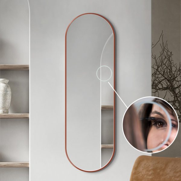 Das minimalistische Design des ovalen Spiegels wird die Inneneinrichtung Ihres Hauses subtil akzentuieren. Das Design stammt aus der skandinavischen Dekorationstradition und passt perfekt in moderne Räume. Der Spiegel hat einen zusätzlichen Griff, mit dem er horizontal oder vertikal aufgehängt werden kann. Das Modell ist in verschiedenen Größen erhältlich – wählen Sie eine davon aus oder bestellen Sie einen maßgefertigten Spiegel.