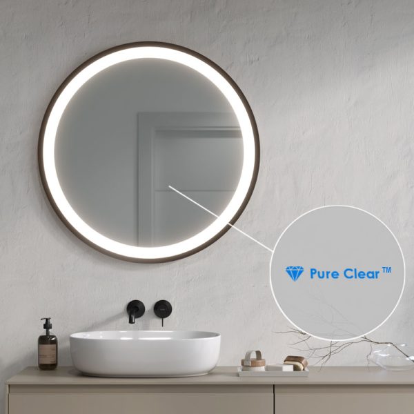 Pure Clear™ ist ein Spiegel, der eine sehr hohe Beständigkeit gegen Kanten- und Punktkorrosion aufweist. Darüber hinaus wurde er mit Respekt für unseren Planeten und die Menschen hergestellt. Dank eines hochmodernen Herstellungsprozesses ist er frei von Blei und organischen Lösungsmitteln, und seine Unterbeleuchtung eliminiert den Effekt der Überbeleuchtung bei der Verwendung von LED-Streifen.
