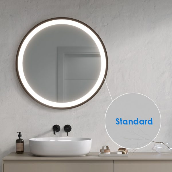 Konfigurieren Sie das Produkt nach Ihren Bedürfnissen. Wählen Sie die Art der Spiegelfolie, die Lichtfarbe und die Art des LED-Streifens. Entscheiden Sie sich für einen traditionellen Schalter, einen berührungsempfindlichen Schalter oder einen Spiegel mit Bewegungsmelder. Wählen Sie zusätzliches Zubehör – Vergrößerungsspiegel, Heizmatten oder Bluetooth-Lautsprecher.