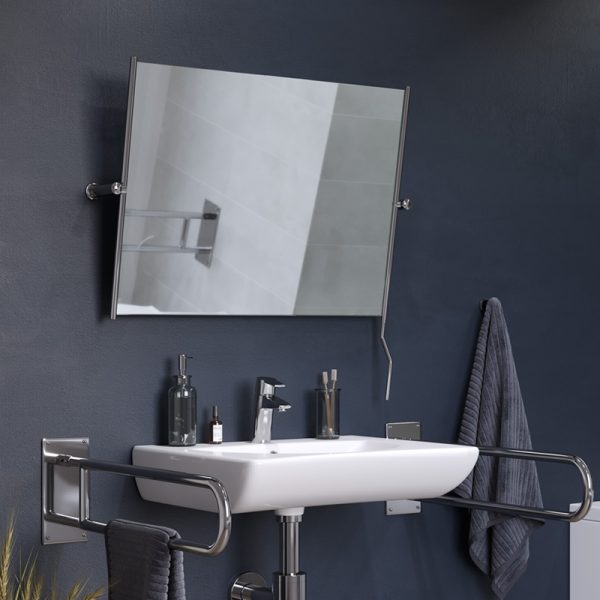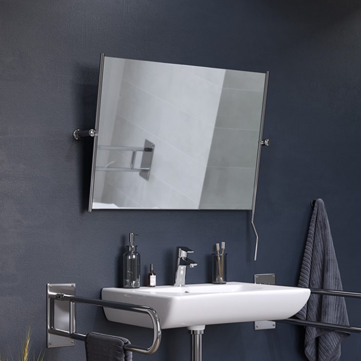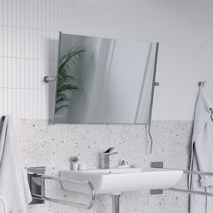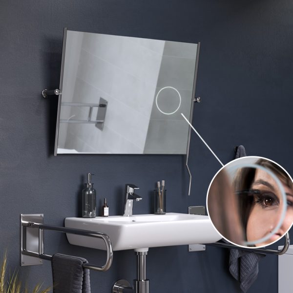 Der Med ST Atom neigbare Badezimmerspiegel aus der Med Line Kollektion von RUKE ist ein Modell, das für den Komfort von Menschen mit Behinderungen entwickelt wurde. Dank des angepassten Designs und des bequemen Griffs kann die Einstellung an die individuellen Bedürfnisse von Personen mit Mobilitäts- oder Bewegungsproblemen der oberen Gliedmaßen angepasst werden. Der Med ST Atom, RUKEs neigbarer Spiegel für Menschen mit Behinderungen, wurde aus Stahlelementen und einer hochwertigen Spiegelplatte hergestellt.