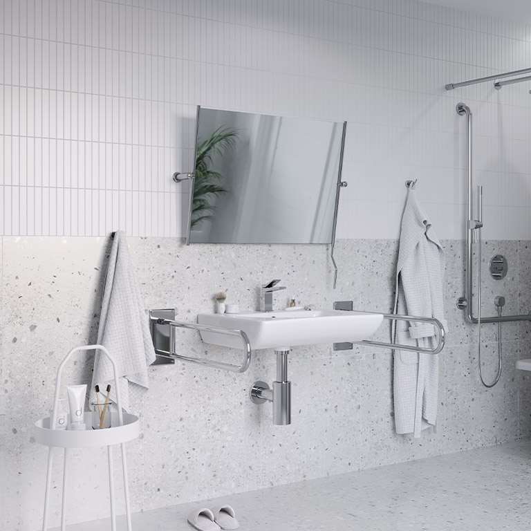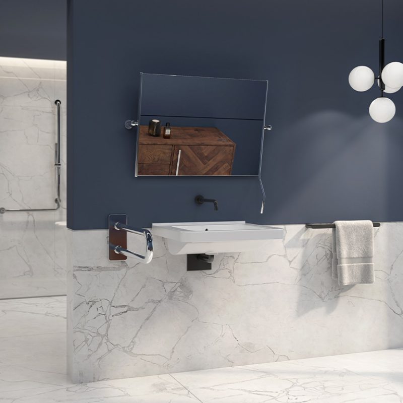 Das Modell Med ST Atom wurde für Menschen mit Behinderungen sowie für ältere Menschen und solche mit Mobilitätsproblemen entwickelt. Es ermöglicht außerdem allen Badezimmerbenutzern, bequem durch die Spiegelfläche zu navigieren.