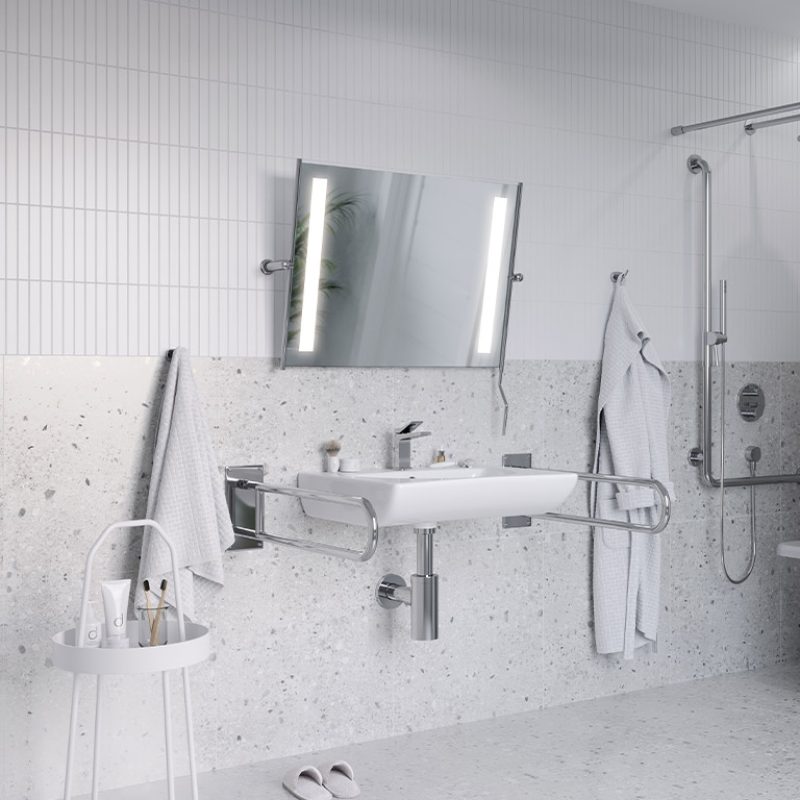 Das Modell Med ST Duoline LED wurde für Menschen mit Behinderungen, ältere Menschen und Menschen mit Mobilitätsproblemen entwickelt. Es ermöglicht außerdem allen Benutzern im Badezimmer, die Spiegelfläche komfortabel zu navigieren.