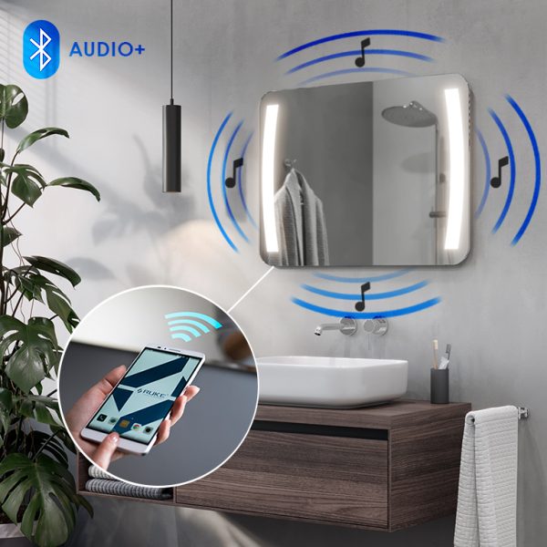 Das von RUKE entwickelte AUDIO+ System verwandelt Ihren Spiegel in einen hochwertigen Lautsprecher. Der Klang kommt aus der gesamten Oberfläche des Blattes und erzeugt so einen Surround-Sound-Effekt.