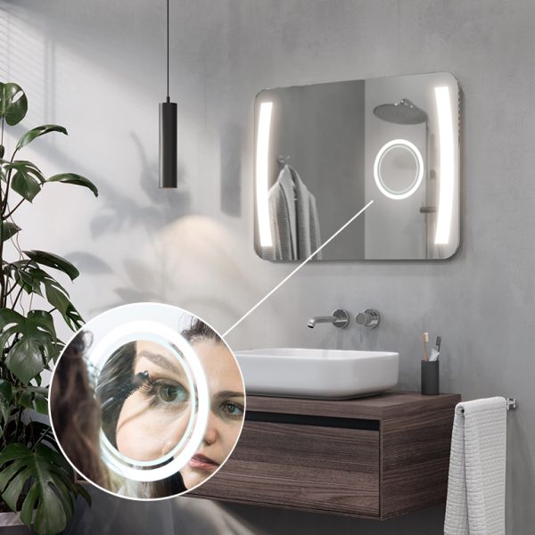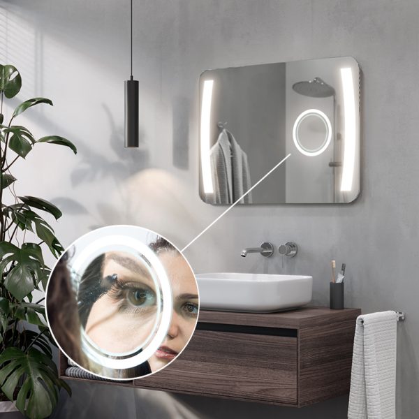Der Vergrößerungsspiegel ist eine der praktischsten Einrichtungen im Badezimmer. Der Spiegel hat eine optimale Vergrößerung von x3 oder x5 und einen Durchmesser von 14 cm. Er ist sanft in die Oberfläche des Spiegels integriert und bildet mit diesem eine Einheit.