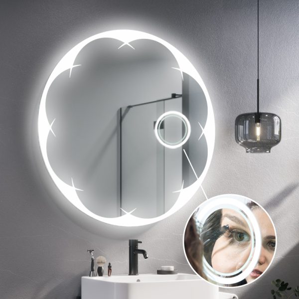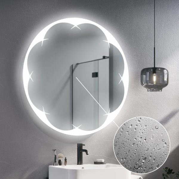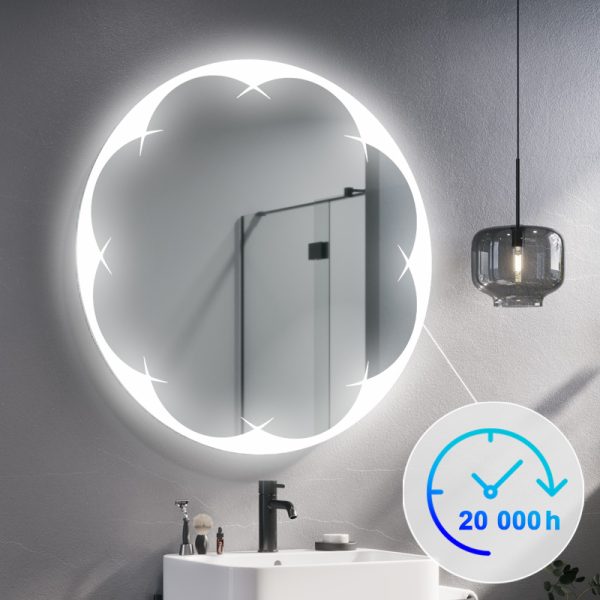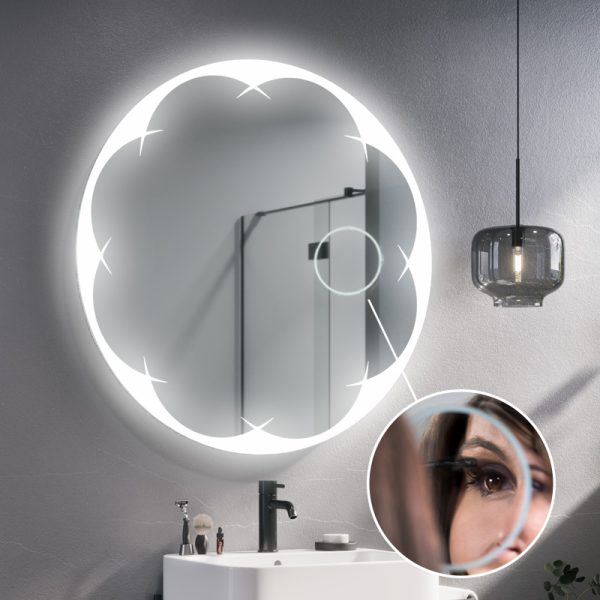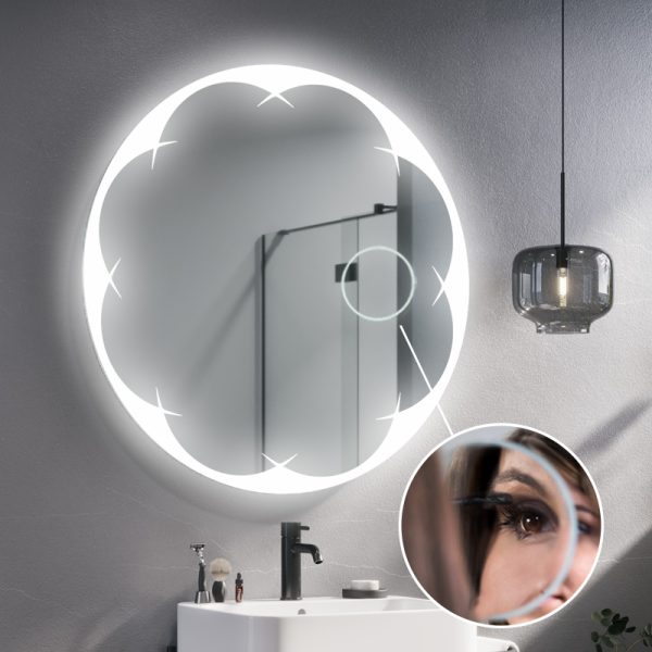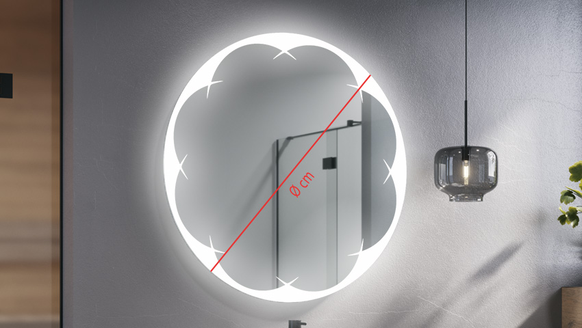 Der LED-Badezimmerspiegel wird Ihr Zuhause erhellen Der runde beleuchtete Spiegel Ofelia ist die perfekte Lösung für moderne und charaktervolle Badezimmer. Je nachdem, für welche Größe Sie sich entscheiden, passt er sowohl in große als auch in kleine Räume.   Es ist auch eine hervorragende Option für kleine Flure mit Schränken, in denen es oft dunkel ist. Dank der großen Lichtmenge, die der LED-Streifen liefert, kann das Modell Ofelia Teil des Schminktisches einer Dame sein. Es verleiht dem Raum ein luxuriöses Aussehen.