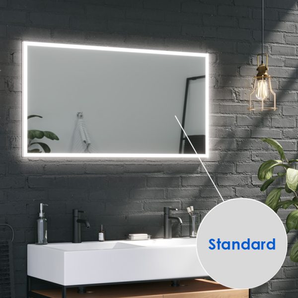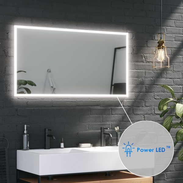 Wenn Sie zusätzliche Beleuchtung wünschen, wählen Sie die POWER LED-Option, die bis zu 100 % mehr Licht als herkömmliche LED-Streifen erzeugt. Der Vorteil des LED-Badezimmerspiegels ist der unscharfe Lichteffekt. Dies bietet vollen Komfort bei der Verwendung des Panels – die Hintergrundbeleuchtung blendet nicht Ihre Augen, es ermöglicht Ihnen auch, alle Details vollständig zu sehen.