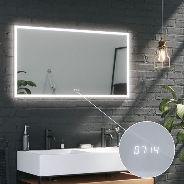 Digitale Led-Uhr in weiß mit der Möglichkeit der Montage fast überall auf dem Spiegel, Displaygröße 2x5cm. Die Uhr zeigt die Zeit mit dem Spiegel Schalter Option oder wenn das Hauptlicht eingeschaltet ist, wenn der Spiegel nicht über einen Schalter.