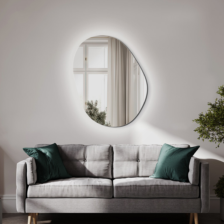 Der beleuchtete Spiegel Kernel Ambiente ist ein avantgardistisches Modell mit einer ovalen und leicht unregelmäßigen Form. Er passt perfekt in Innenräume, in denen es keinen Platz für Langeweile gibt.