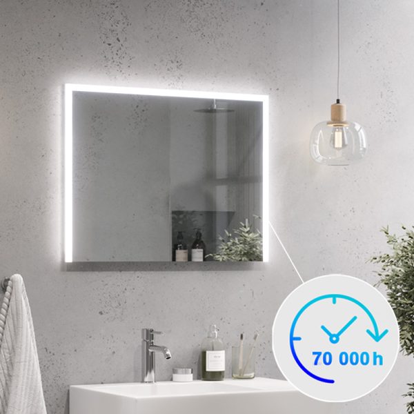 Der rechteckige Fenestra-Badezimmerspiegel ist ein Vorschlag, der diejenigen interessieren wird, die einfache Form kombiniert mit elegantem Design bevorzugen. Er unterstreicht sowohl die traditionelle als auch die moderne Badgestaltung. Symmetrisch verteilte LED-Streifen sorgen für eine gleichmäßige Ausleuchtung der gesamten Fläche mit warmem Licht, so dass Ihr Spiegelbild zu jeder Tages- und Nachtzeit perfekt klar ist.