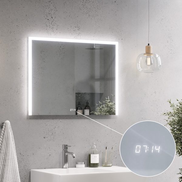 Digitale Led-Uhr in weiß mit der Möglichkeit der Montage fast überall auf dem Spiegel, Displaygröße 2x5cm. Die Uhr zeigt die Zeit mit dem Spiegel Schalter Option oder wenn das Hauptlicht eingeschaltet ist, wenn der Spiegel nicht über einen Schalter.