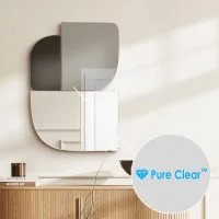 Pure Clear™ ist ein Spiegel, der sehr widerstandsfähig gegen Kanten- und Punktkorrosion ist. Außerdem wird er mit Rücksicht auf den Planeten und die Menschen hergestellt. Dank eines fortschrittlichen Herstellungsverfahrens ist er frei von Blei und organischen Lösungsmitteln, und seine Unterbeleuchtung verhindert den Effekt der Überbeleuchtung bei Verwendung von LED-Streifen.