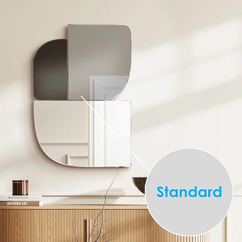 Origineller Spiegel Er ist ein einzigartiges Dekorationselement, das eine Glasplatte mit farbigen Akzenten kombiniert. Seine originelle Form und die Möglichkeit, ihn zu personalisieren, machen ihn perfekt für jede Einrichtung. Ideal für das Wohnzimmer, das Schlafzimmer oder den Flur, verbindet er Funktionalität mit modernem Stil.