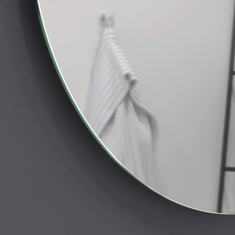 Ein Spiegel, der eine sehr hohe Beständigkeit gegen periphere und punktuelle Korrosion bietet. Darüber hinaus wird er mit Rücksicht auf unseren Planeten und die Menschen hergestellt. Dank eines hochmodernen Herstellungsverfahrens ist er frei von Blei und organischen Lösungsmitteln, und seine Unterbeleuchtung eliminiert den Effekt der Überbelichtung bei der Verwendung von LED-Streifen.