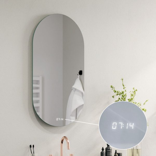Weiße LED-Digitaluhr, die fast überall am Spiegel angebracht werden kann, Anzeigegröße 2x5cm. Die Uhr zeigt die Zeit mit dem optionalen Schalter am Spiegel oder bei eingeschaltetem Hauptlicht an, wenn der Spiegel keinen Schalter hat.