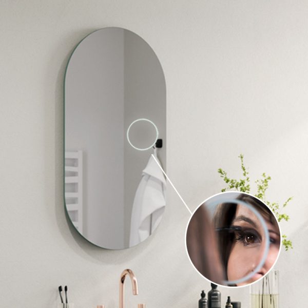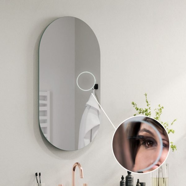 Der Vergrößerungsspiegel ist eine der praktischsten Einrichtungen im Badezimmer. Der Spiegel hat eine optimale Vergrößerung von x3 oder x5 und einen Durchmesser von 14 cm. Er ist sanft in die Oberfläche des Spiegels integriert und bildet mit diesem eine Einheit.