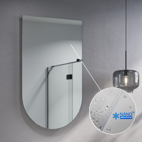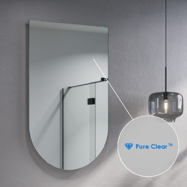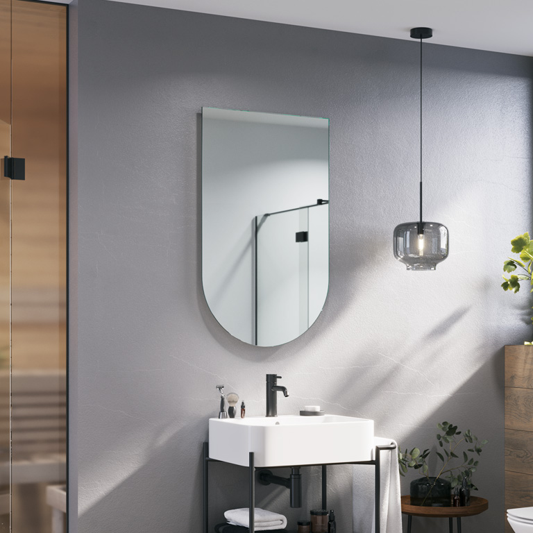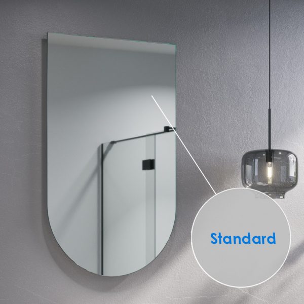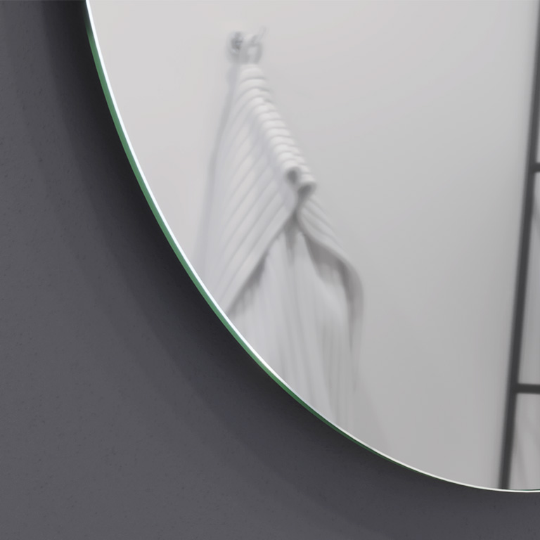 Ein Spiegel, der eine sehr hohe Beständigkeit gegen periphere und punktuelle Korrosion bietet. Darüber hinaus wird er mit Rücksicht auf unseren Planeten und die Menschen hergestellt. Dank eines hochmodernen Herstellungsverfahrens ist er frei von Blei und organischen Lösungsmitteln, und seine Unterbeleuchtung eliminiert den Effekt der Überbelichtung bei der Verwendung von LED-Streifen.