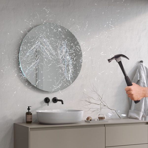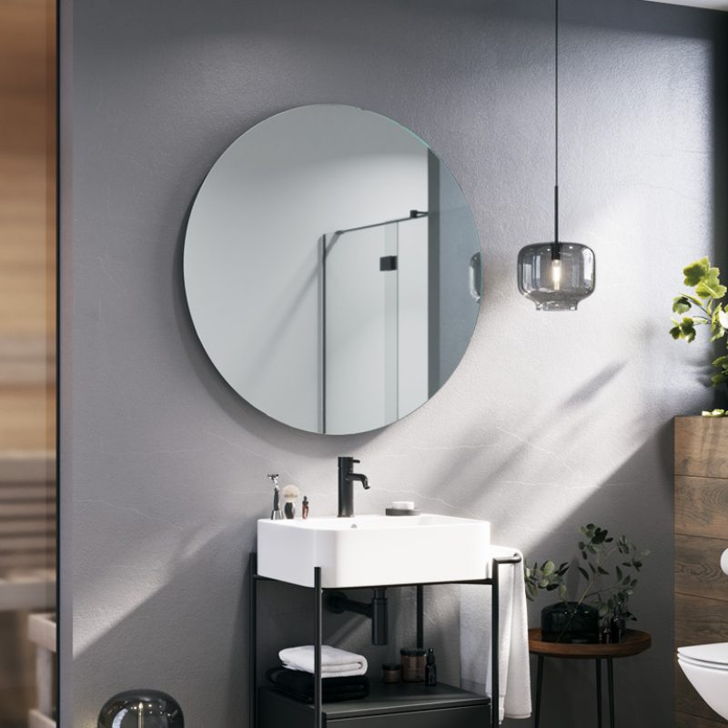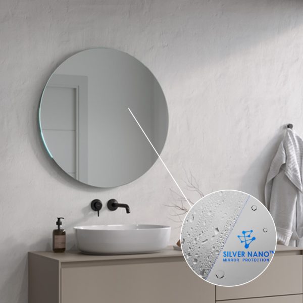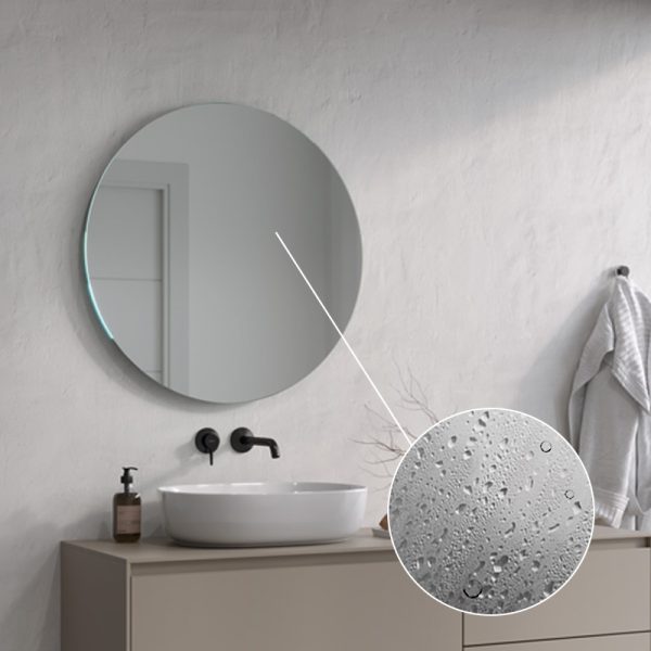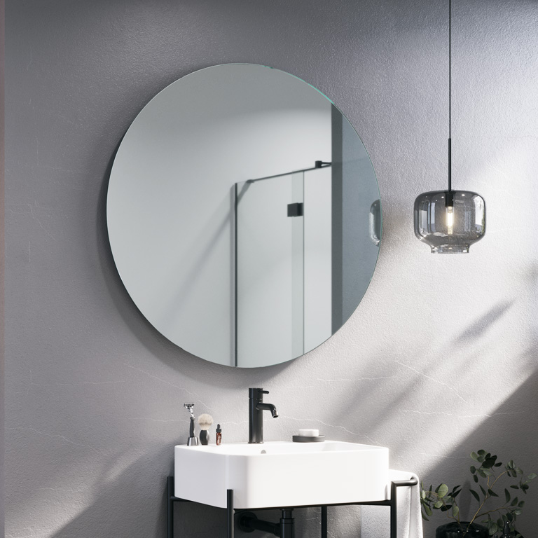 Ein Spiegel, der eine sehr hohe Beständigkeit gegen periphere und punktuelle Korrosion bietet. Darüber hinaus wird er mit Rücksicht auf unseren Planeten und die Menschen hergestellt. Dank eines hochmodernen Herstellungsverfahrens ist er frei von Blei und organischen Lösungsmitteln, und seine Unterbeleuchtung eliminiert den Effekt der Überbelichtung bei der Verwendung von LED-Streifen.