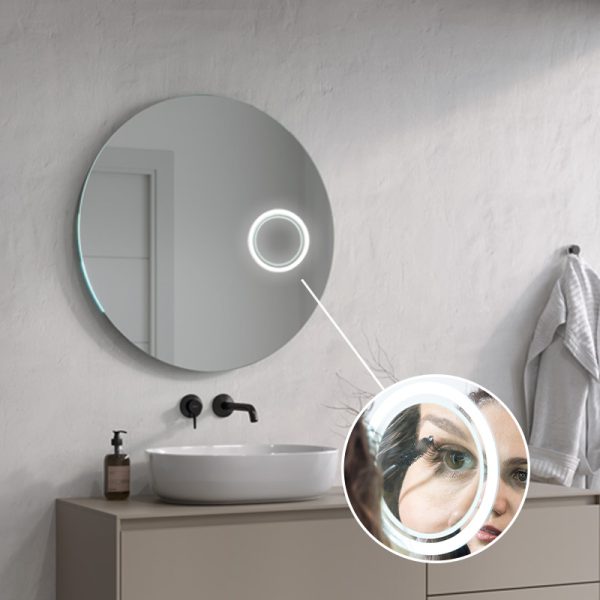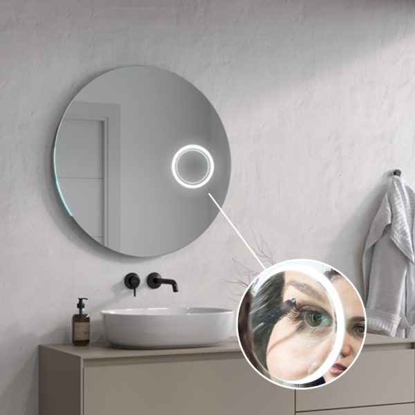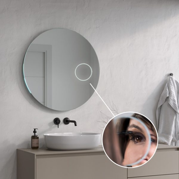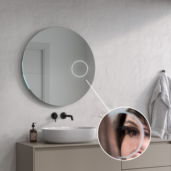 Der Vergrößerungsspiegel ist eine der praktischsten Einrichtungen im Badezimmer. Der Spiegel hat eine optimale Vergrößerung von x3 oder x5 und einen Durchmesser von 14 cm. Er ist sanft in die Oberfläche des Spiegels integriert und bildet mit diesem eine Einheit.