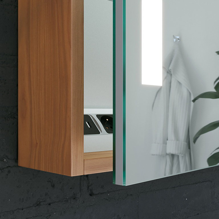 Der Vergrößerungsspiegel ist eine der praktischsten Einrichtungen im Badezimmer. Der Spiegel hat eine optimale Vergrößerung von x3 oder x5 und einen Durchmesser von 14 cm. Er ist sanft in die Oberfläche des Spiegels integriert und bildet mit diesem eine Einheit.