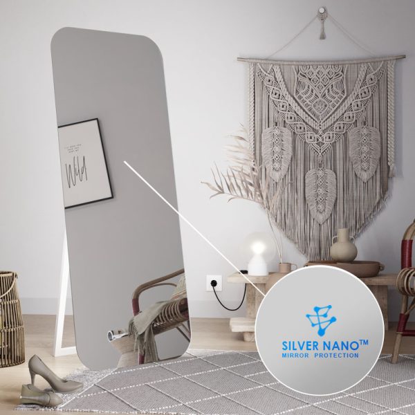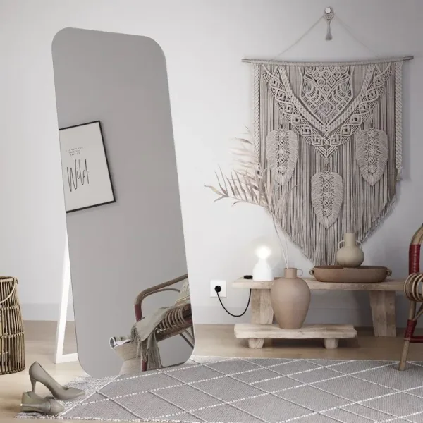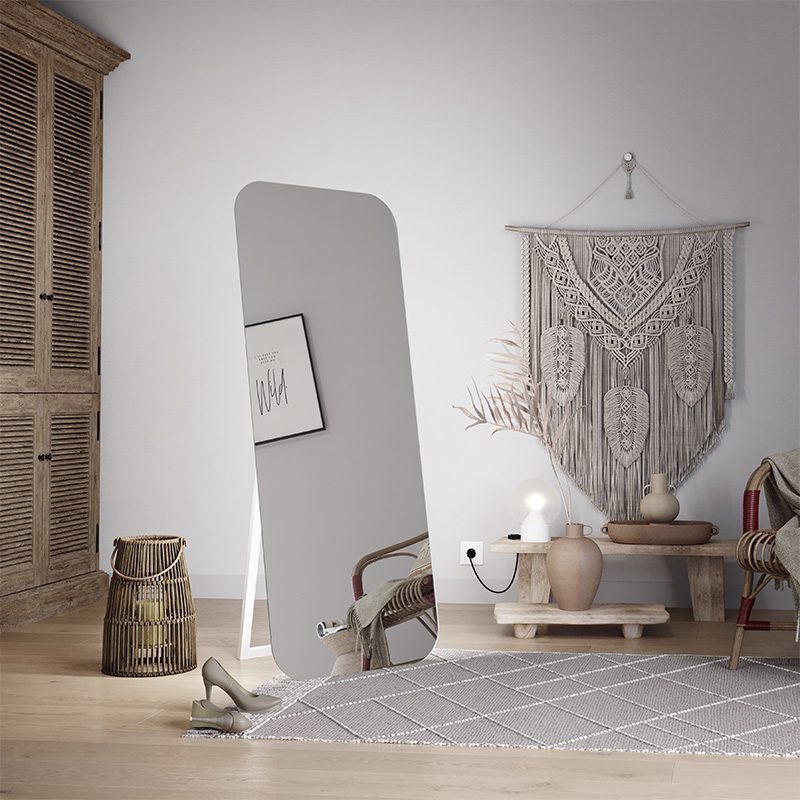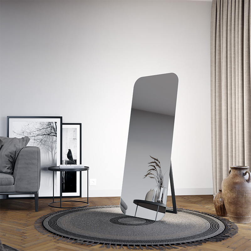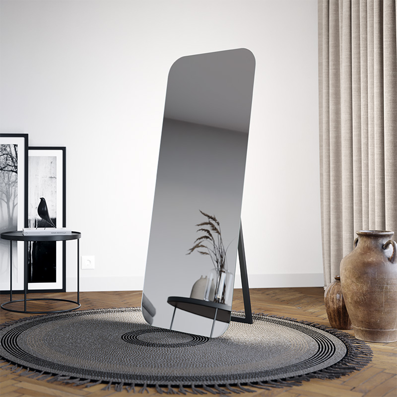 Der elegante und minimalistische Mirano Ambiente Standspiegel ist eine perfekte Wahl für jedes Interieur. Seine schlanke, rechteckige Form mit abgerundeten Ecken fügt sich harmonisch in die Einrichtung von Wohnzimmer, Schlafzimmer, Ankleidezimmer oder Flur ein. Seine robuste Konstruktion und sein universelles Design machen ihn nicht nur zu einer praktischen Ergänzung, sondern auch zu einem stilvollen Dekorationselement.