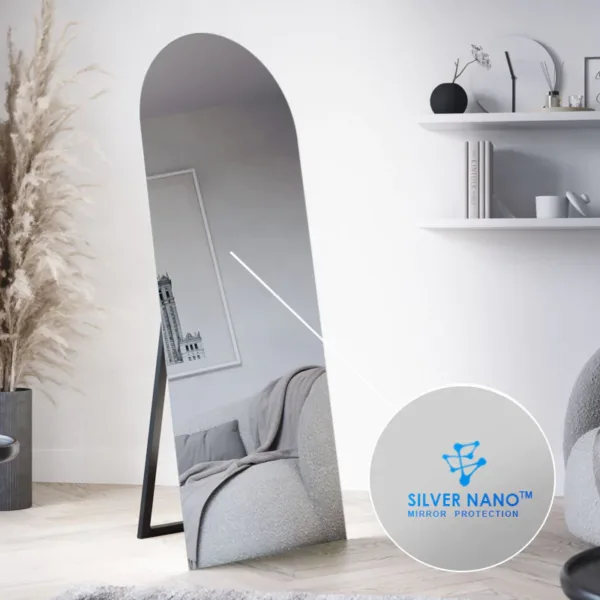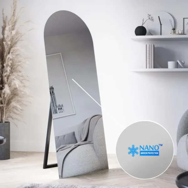Portano Ambiente Standspiegel. Der elegante und minimalistische Standspiegel ist die perfekte Wahl für jedes Interieur. Seine schlanke, rechteckige Form mit abgerundeten Ecken fügt sich harmonisch in die Gestaltung von Wohnzimmer, Schlafzimmer, Ankleidezimmer oder Flur ein. Seine stabile Konstruktion und sein universelles Design machen ihn nicht nur zu einer praktischen Ergänzung, sondern auch zu einem stilvollen Dekorationselement.