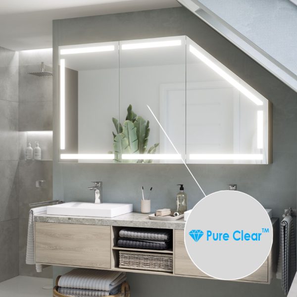 A mirror that is highly resistant to edge and spot corrosion. Moreover, it is manufactured with respect for the planet and people. Thanks to an advanced manufacturing process, it is free of lead and organic solvents, and its underexposure eliminates the overexposure effect when using LED strips.