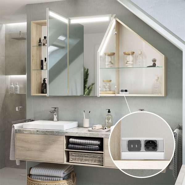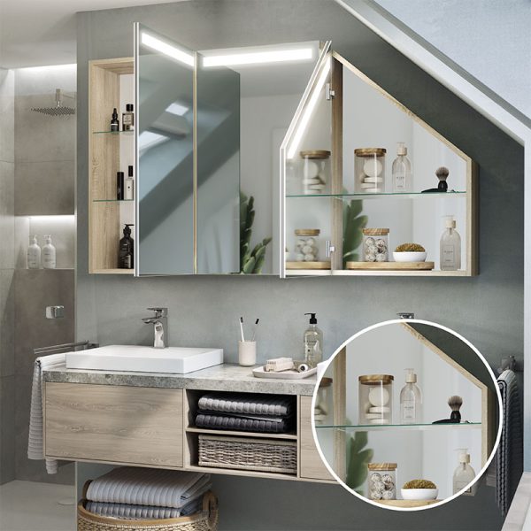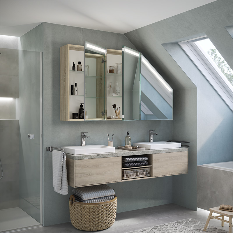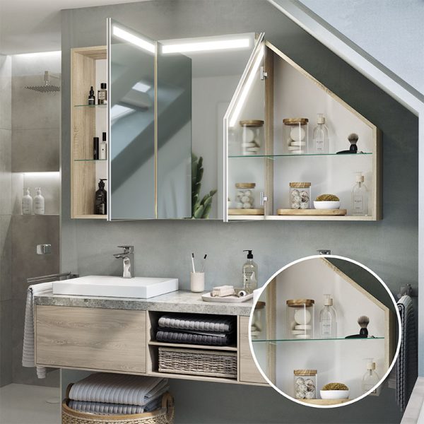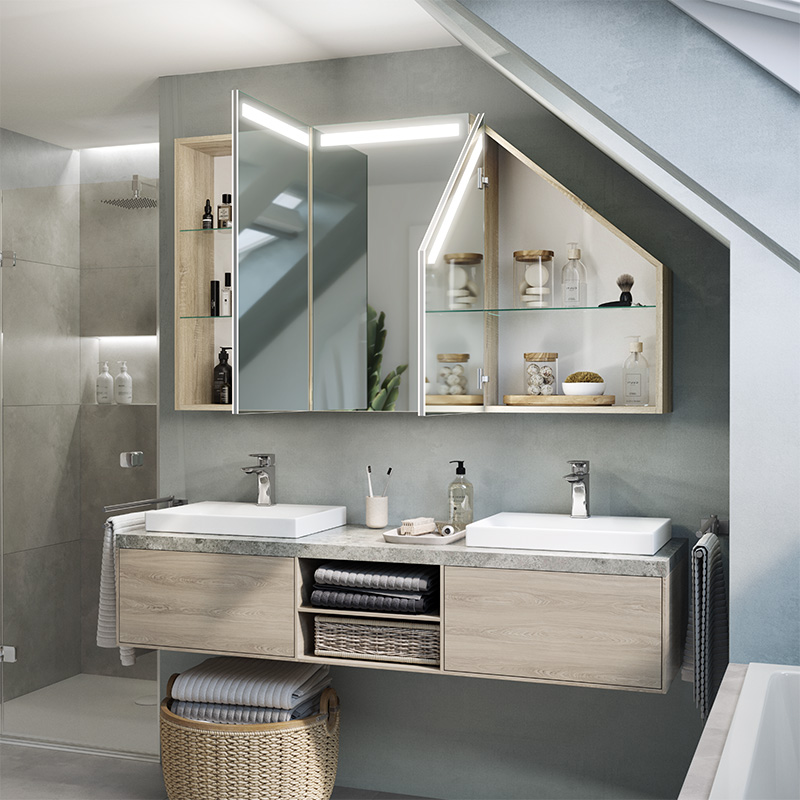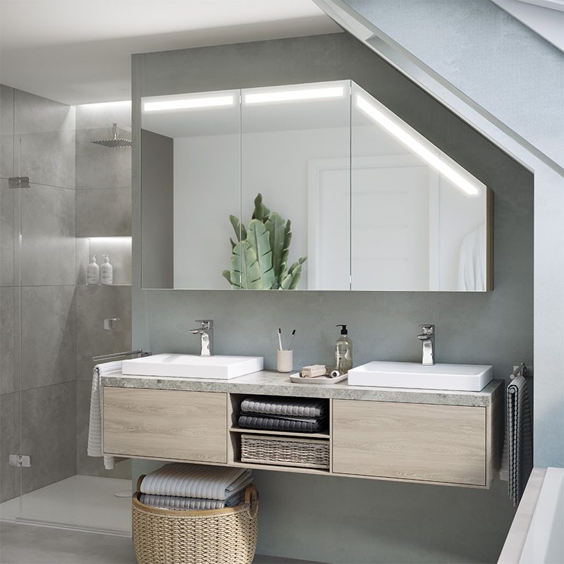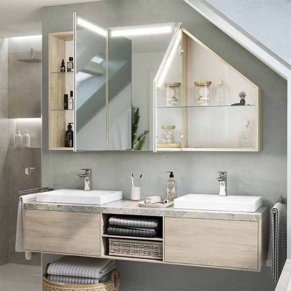 The Primaveros is a bathroom cabinet designed for demanding spaces, such as sloping areas. Its thoughtful design and modern solutions, such as LED lighting, make this furniture perfect for any bathroom.
