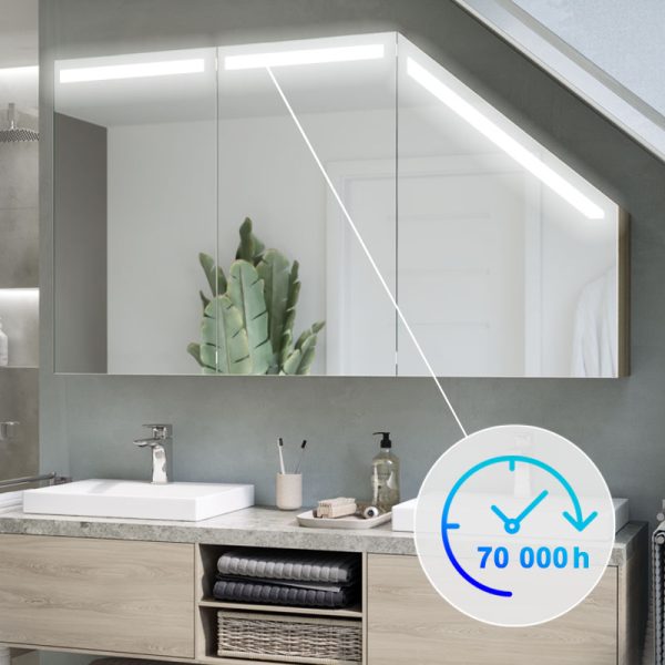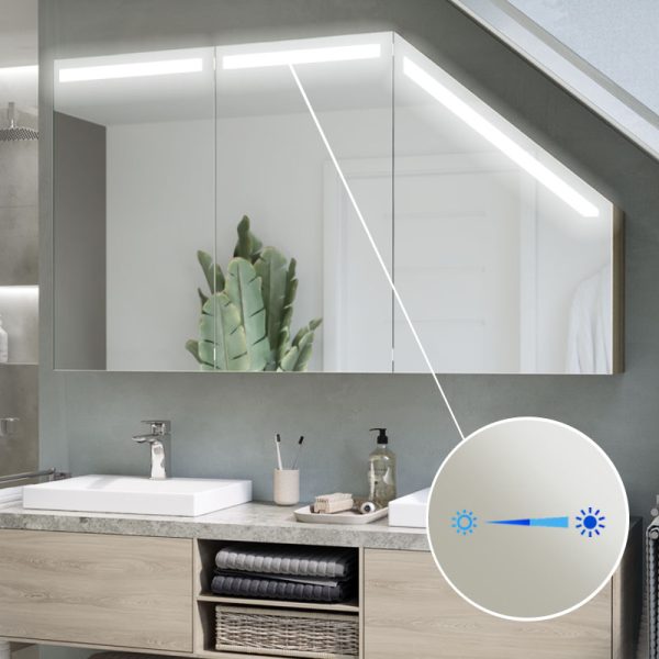 The modern and functional Primaveros cabinet is ideal for bathrooms, including sloping areas. Equipped with LED lighting, it offers practical storage space and a minimalist design that fits into a variety of environments.