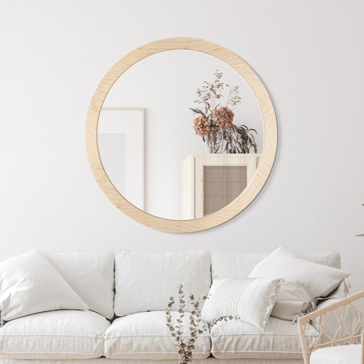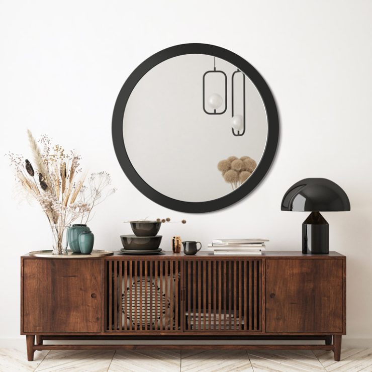 The Scandinavia BOLD round mirror is a model characterised by simplicity and elegance. It is perfect for modernist interiors – both in the bathroom and in the living room, bedroom or hall. The panel is placed in a 6 cm wide frame, which can be made of double oiled hardwood plywood or waterproof MDF painted with multi-component varnish.