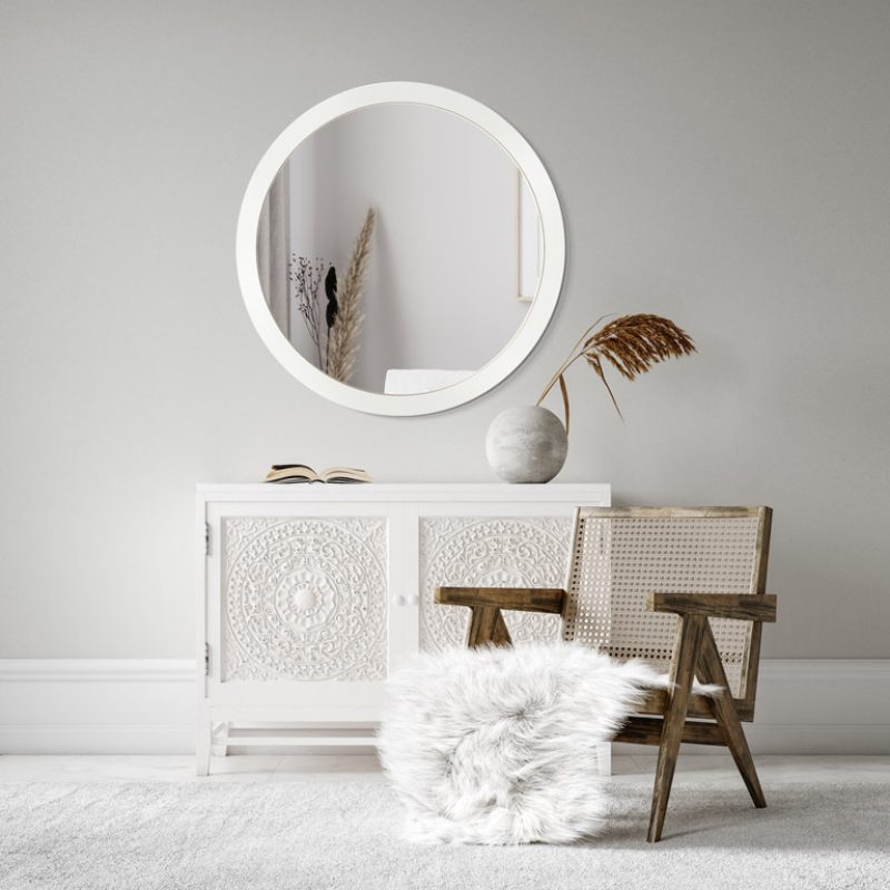 Scandinavia Bold is a model characterised by its versatility. It will be an elegant addition to your living room, hall or bedroom. The simple yet elegant form and the natural materials of the 6 cm wide frame, make the mirror suitable for both modern and traditional style interiors. MDF board painted with multi-component varnish is resistant to moisture, so the Scandinavia Bold model is also recommended as a functional decorative element for the bathroom.