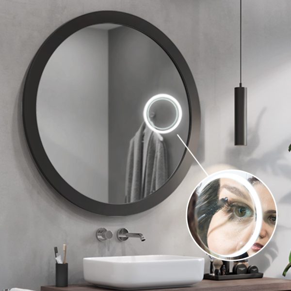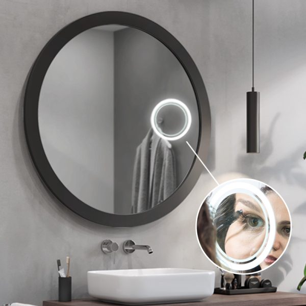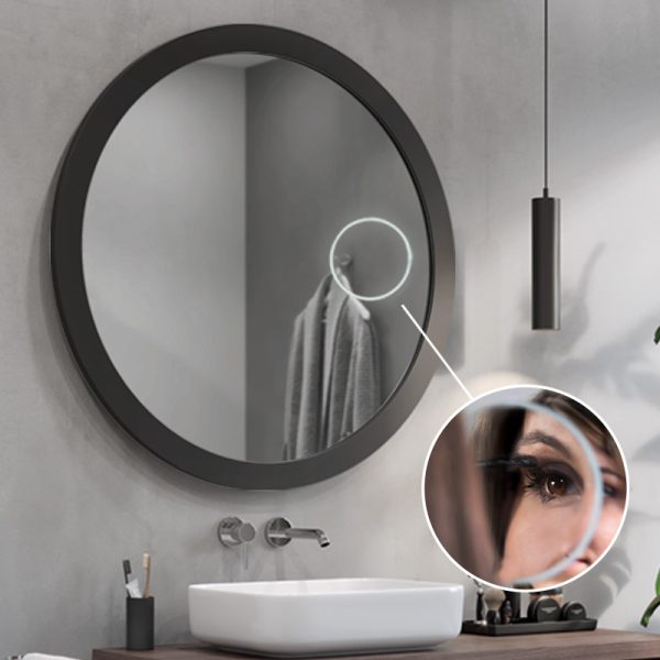 The magnifying mirror is one of the most practical pieces of bathroom equipment. The mirror has an optimum magnification of x3 or x5 and a diameter of 14cm. Smoothly integrated into the surface of the mirror, it forms a unified whole with it.