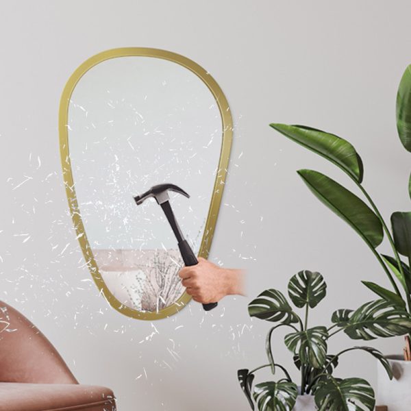 An approved safety film applied to the entire back of the mirror panel minimises the risk of injury when the mirror is broken.
