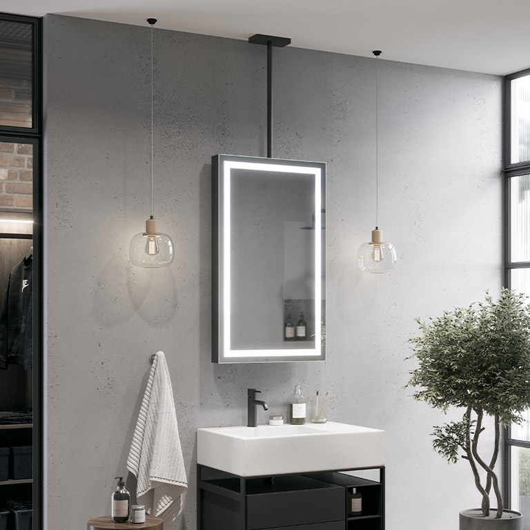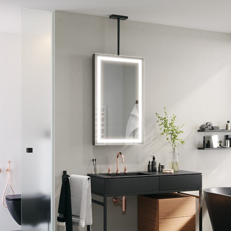 The suspended mirror has been created on the basis of the latest design trends and is characterised by elegant, intriguing styling and extraordinary functionality.