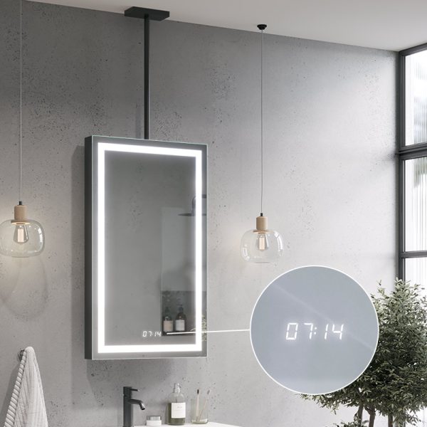 Digital Led clock in white with the possibility of mounting almost anywhere on the mirror, display size 2x5cm. The clock displays the time with the mirror switch option or when the main light is switched on if the mirror does not have a switch.