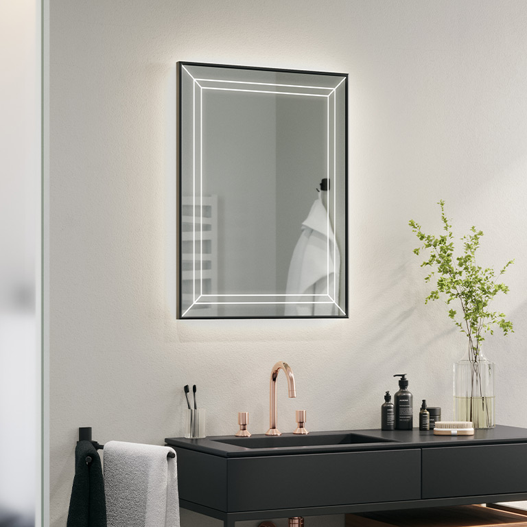 A mirror that provides very high resistance to edge and spot corrosion. In addition, it has been manufactured with respect for the planet and humans. Thanks to a state-of-the-art manufacturing process, it is free of lead and organic solvents, and its under-lighting eliminates the overexposure effect when LED strips are used.
