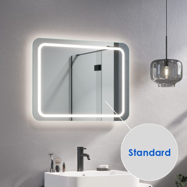 LED mirrors are achieved by sandblasting the back side of the mirror in suitable places, i.e. stripping off its mirror coating with a specialised fine sand. The resulting milky, translucent areas transmit light. Thanks to the use of the most powerful leds available on the market and an innovative installation design, we were able to focus the maximum amount of light in the designated areas and amplify them by more than 100% compared to ordinary led backlit mirrors. As a result, our illumination does not dazzle, but is ideal for everyday use (e.g. when applying make-up, shaving, etc.).