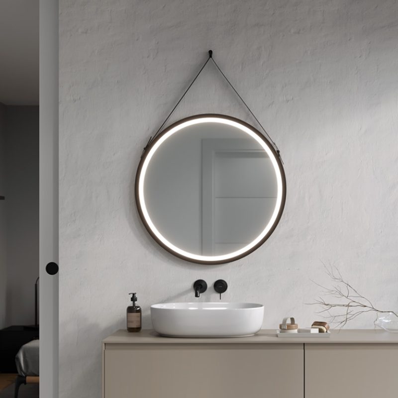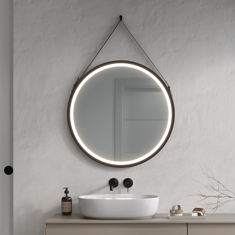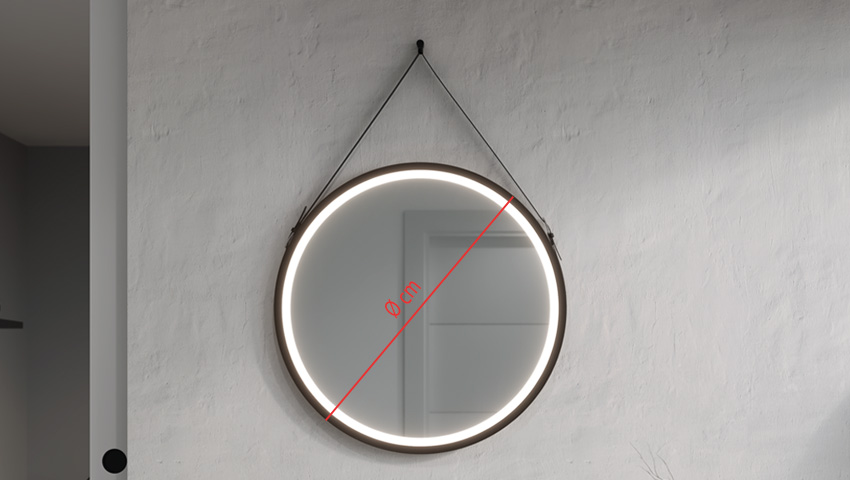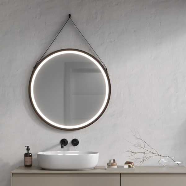 The use of a leather strap as a mirror suspension element makes the model stand out from other proposals.