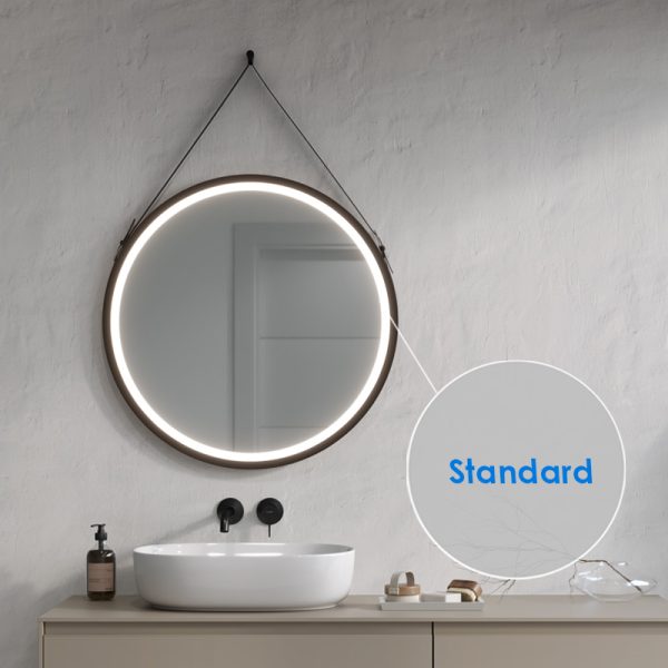 A mirror that provides very high resistance to edge and spot corrosion. In addition, it has been manufactured with respect for the planet and humans. Thanks to a state-of-the-art manufacturing process, it is free of lead and organic solvents, and its under-lighting eliminates the overexposure effect when LED strips are used.
