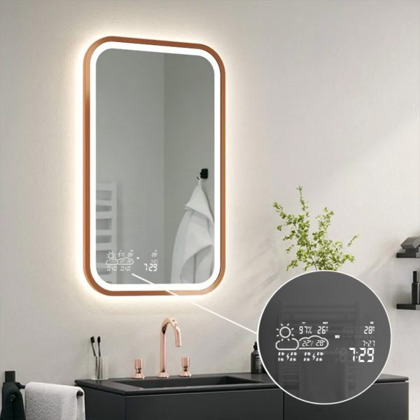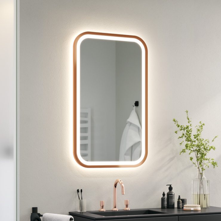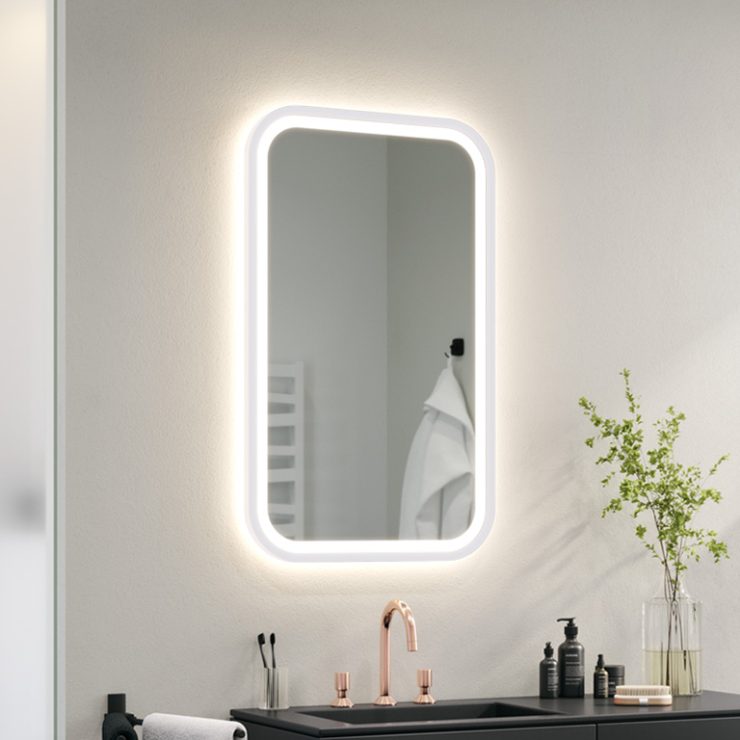 A rectangular mirror with slightly rounded corners will delicately accentuate the decor of your home’s modern interior. It will optically enlarge the space, regardless of whether you decide to hang it in vertical or horizontal orientation.
