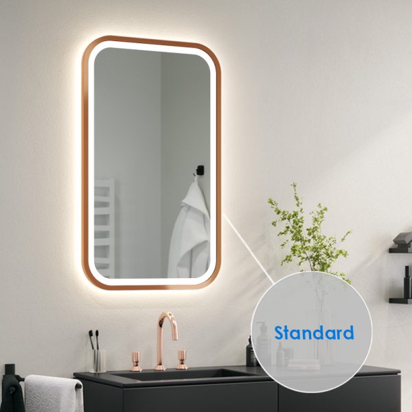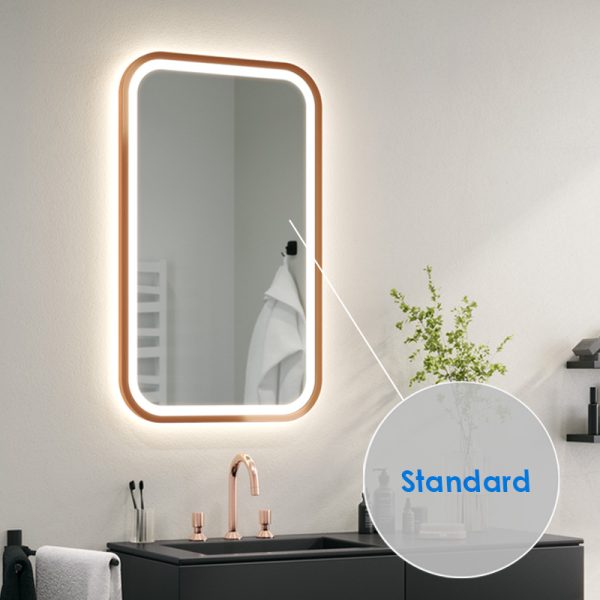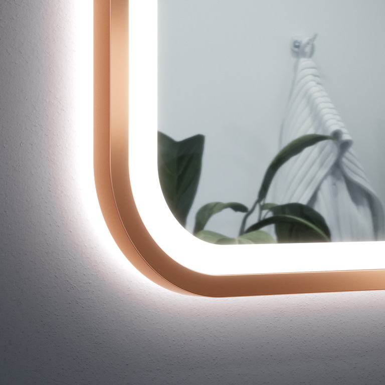 Pure Clear™ is a mirror that provides very high resistance to edge and spot corrosion. Additionally, it has been manufactured with respect for the planet and humans. Thanks to a state-of-the-art manufacturing process, it is free of lead and organic solvents, and its under-lighting eliminates the effect of over-lighting when LED strips are used.