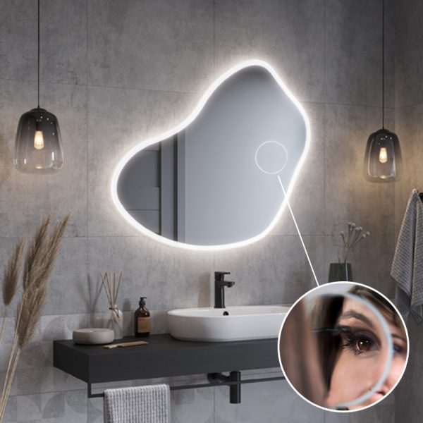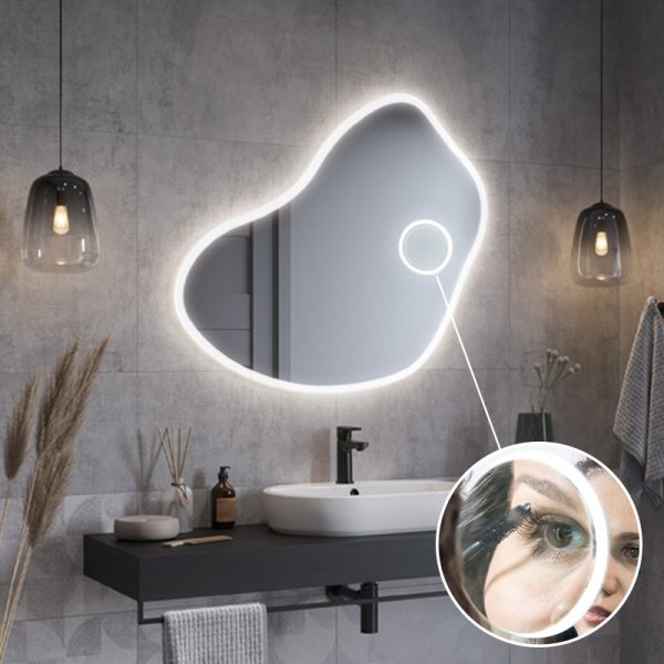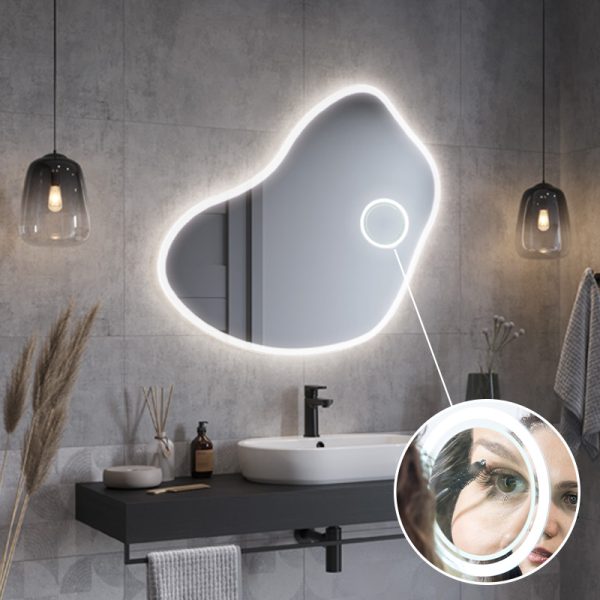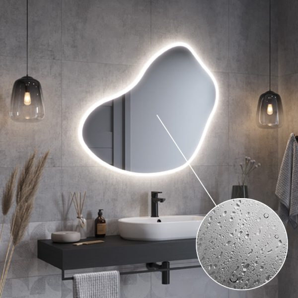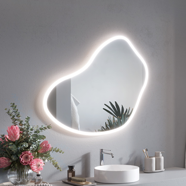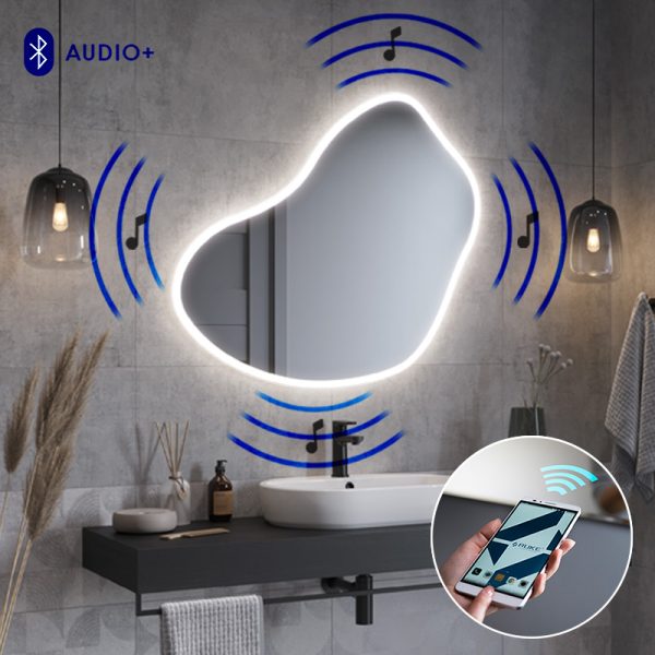 The advantage of the LED bathroom mirror is the ambient lighting that provides the room with a slight twilight giving an intimate and relaxing atmosphere. Also select practical extras such as a switch with brightness regulator for changing the intensity of the lighting, a Bluetooth speaker with which to play music in the bathroom or an anti-steaming heating mat.