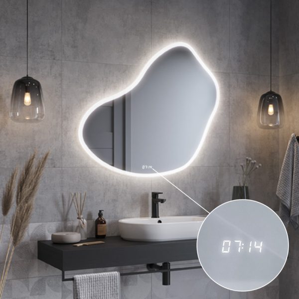 Digital Led clock in white with the possibility of mounting almost anywhere on the mirror, display size 2x5cm. The clock displays the time with the mirror switch option or when the main light is switched on if the mirror does not have a switch.