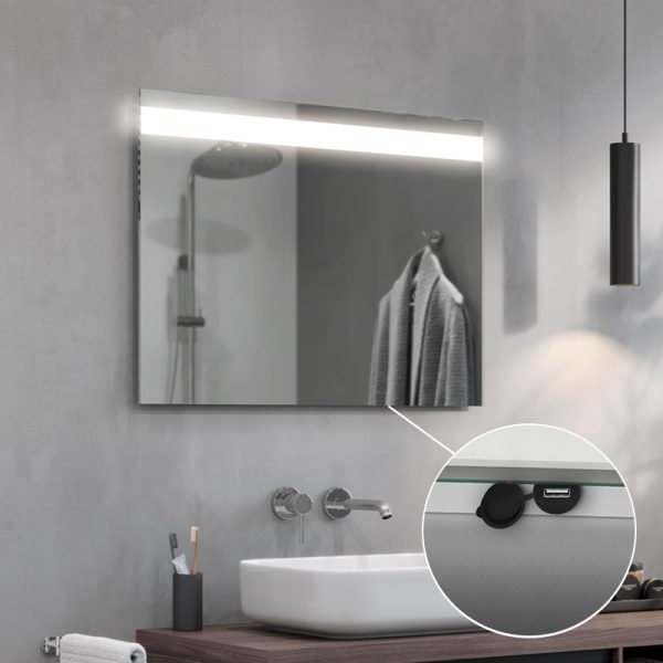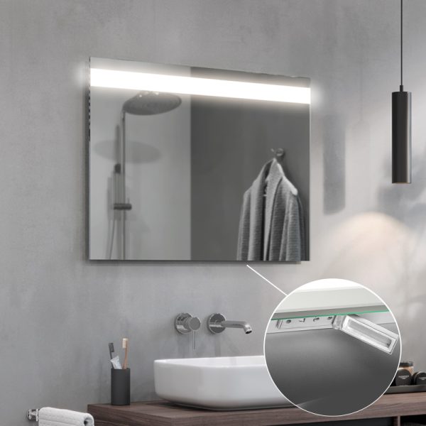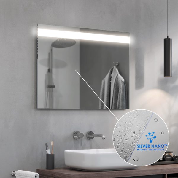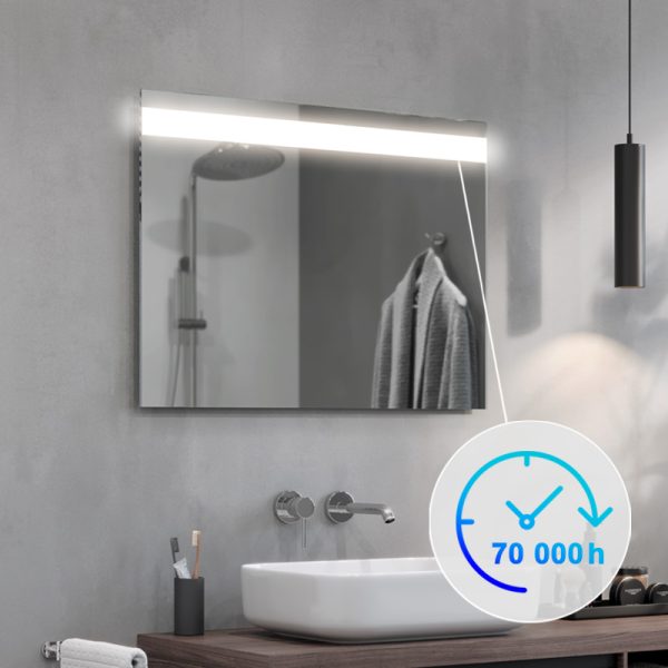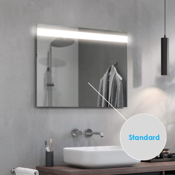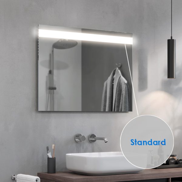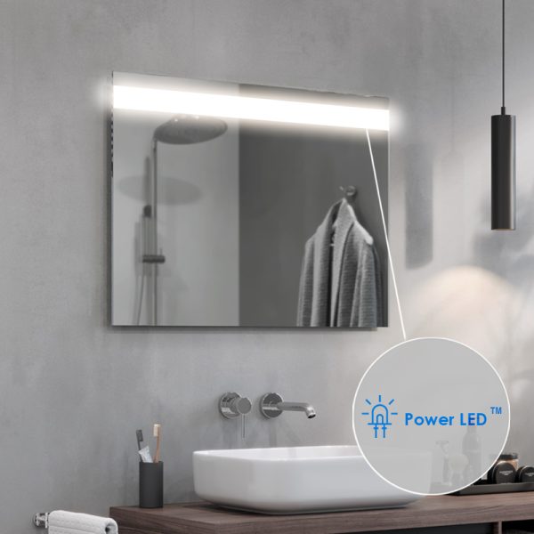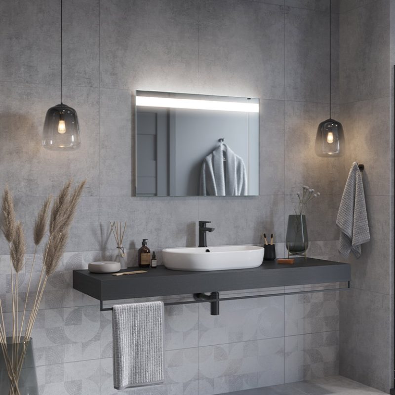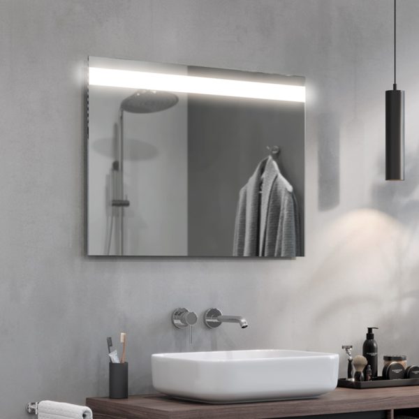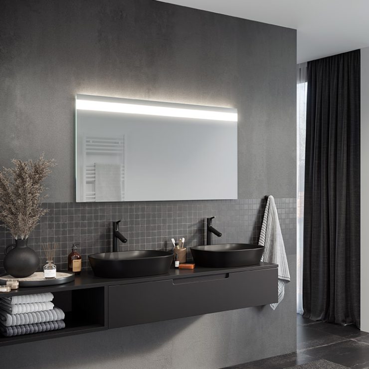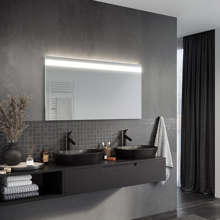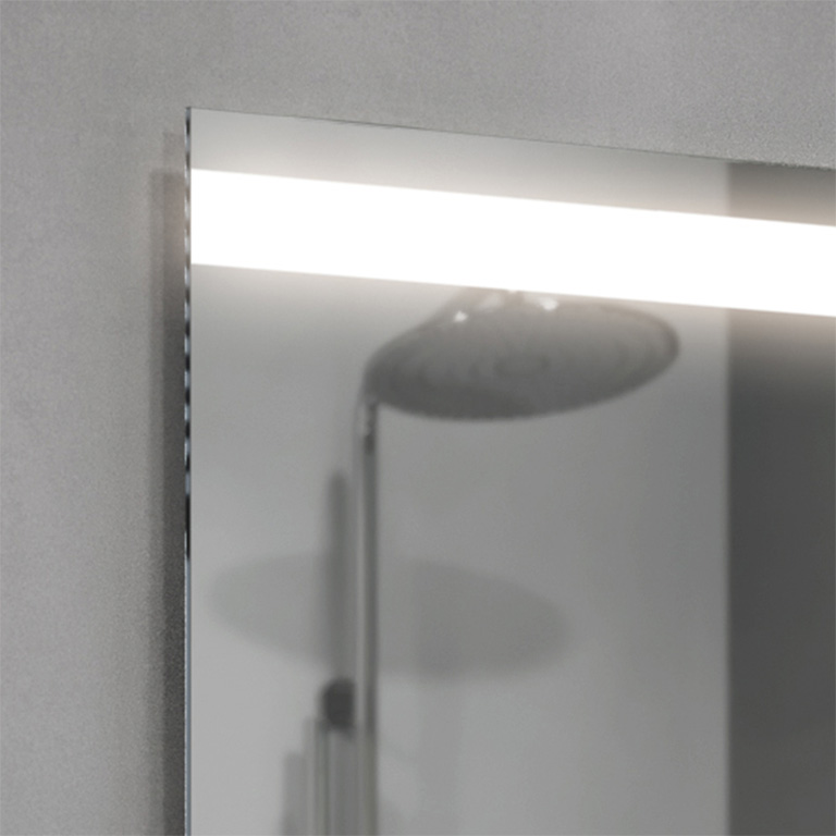 The Linea LED bathroom mirror is an extremely elegant proposal for all those who appreciate modern design. The strip of light at the top of the panel guarantees optimum illumination of the entire mirror surface. They also provide comfort when performing everyday procedures such as shaving or make-up. The Linea LED mirror is made of high-quality Belgian panes, characterised by their high transparency and shine.