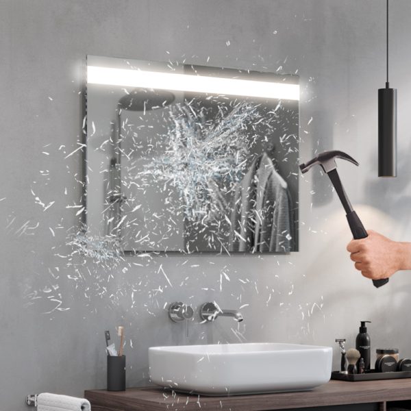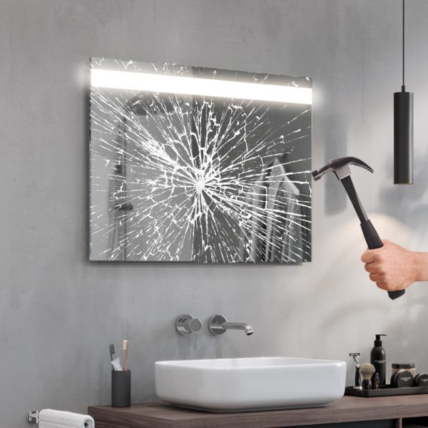 LED mirrors are achieved by sandblasting the back side of the mirror in suitable places, i.e. stripping off its mirror coating with a specialised fine sand. The resulting milky, translucent areas transmit light. Thanks to the use of the most powerful leds available on the market and an innovative installation design, we were able to focus the maximum amount of light in the designated areas and amplify them by more than 100% compared to ordinary led backlit mirrors. As a result, our illumination does not dazzle, but is ideal for everyday use (e.g. when applying make-up, shaving, etc.).