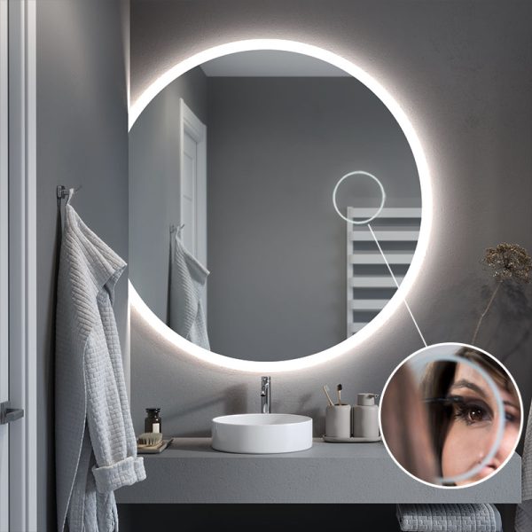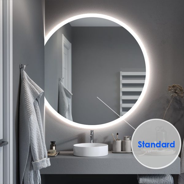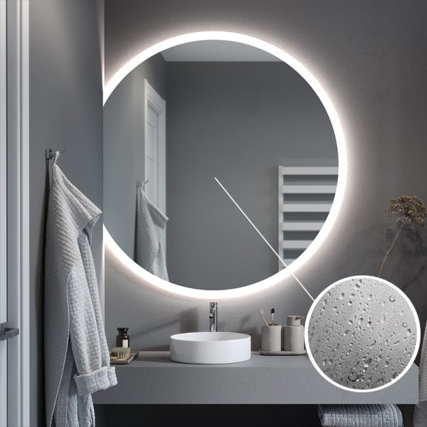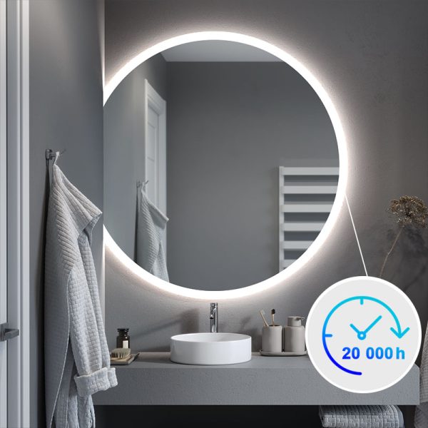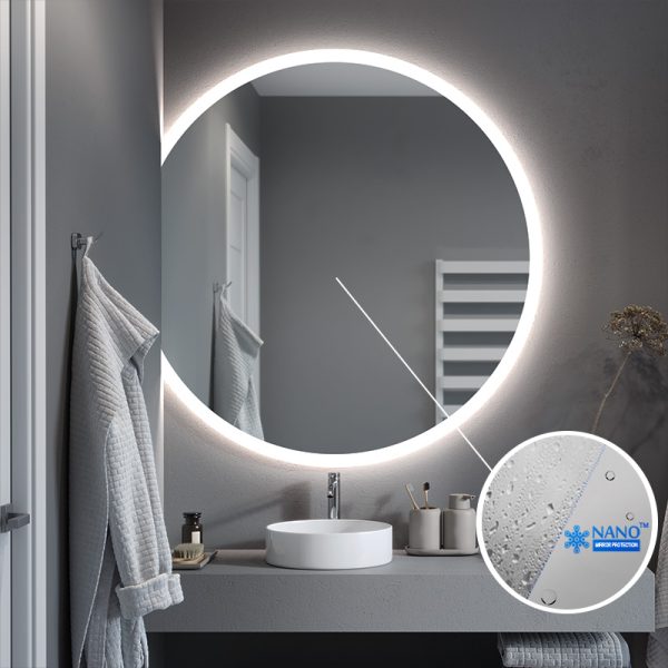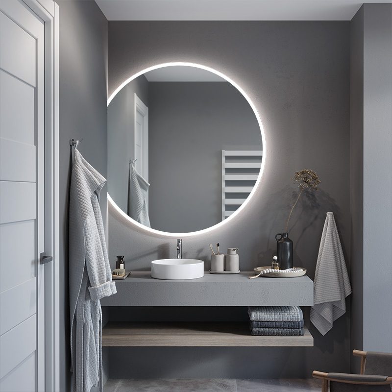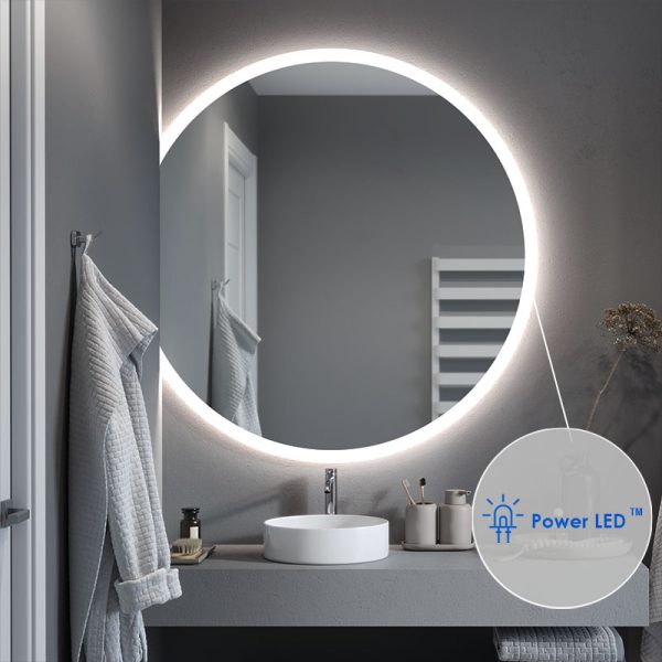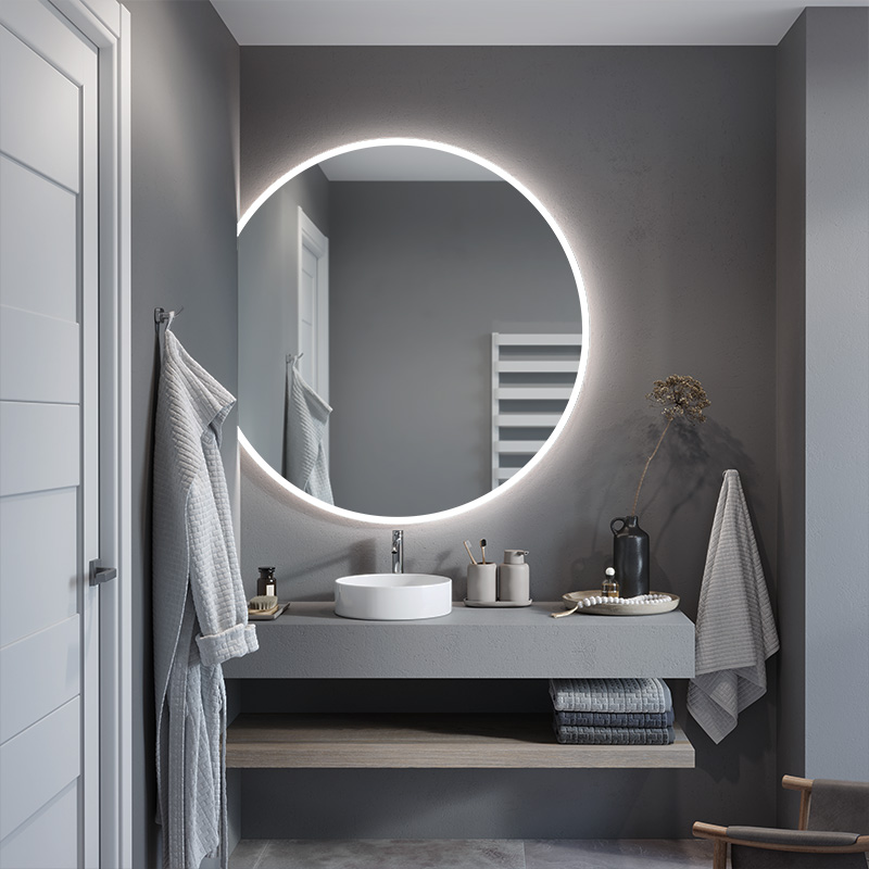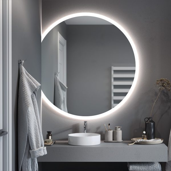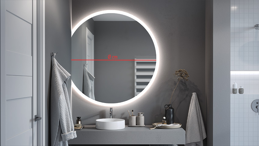 The Luna Slim illuminated mirror in the form of a bevelled circle is the ideal model for modern interiors where every detail counts. You choose the size of the mirror and the position of the horizontal cut yourself. In this way, you can easily create your own composition and transform the look of your bathroom.