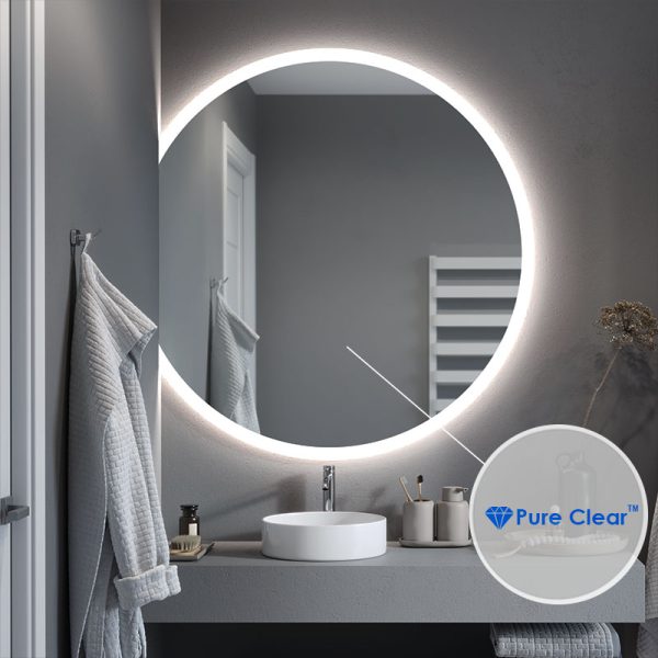 Pure Clear™ is a mirror that provides very high resistance to edge and spot corrosion. Additionally, it has been manufactured with respect for the planet and humans. Thanks to a state-of-the-art manufacturing process, it is free of lead and organic solvents, and its under-lighting eliminates the effect of over-lighting when LED strips are used