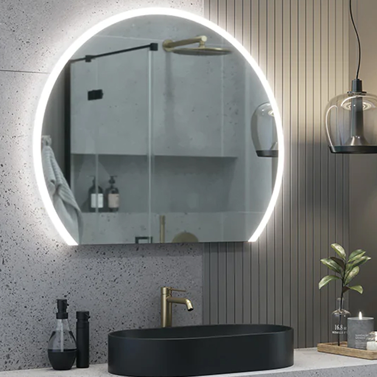 The Milly LED Slim illuminated mirror in the form of a bevelled circle is the ideal model for modern interiors where every detail counts. You choose the size of the mirror and the position of the horizontal cut yourself. In this way, you can easily create your own composition and transform the look of your bathroom.