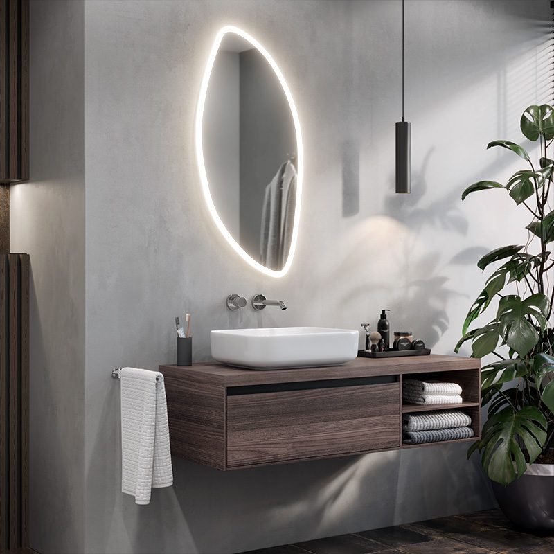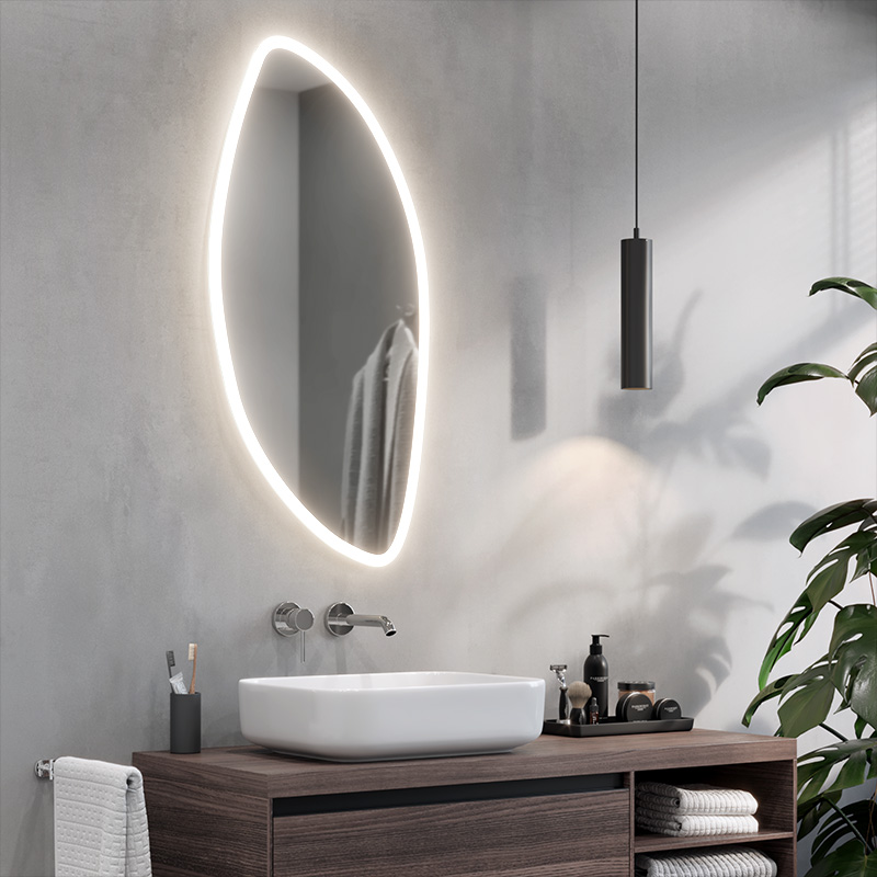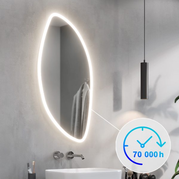 The Petal LED SLIM mirror of the RUKE collection is an avant-garde model with characteristic diffused lighting giving the interior an intimate atmosphere. It will look great especially in a modern bathroom. The ambient lighting provides a relaxing atmosphere making the bathroom décor even more delightful.