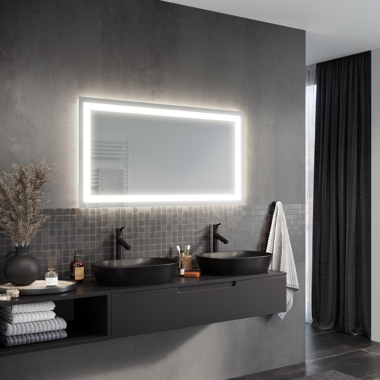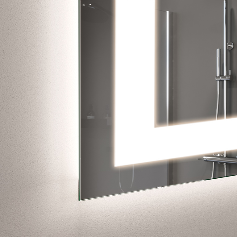 A mirror that provides very high resistance to edge and spot corrosion. In addition, it has been manufactured with respect for the planet and humans. Thanks to a state-of-the-art manufacturing process, it is free of lead and organic solvents, and its under-lighting eliminates the overexposure effect when LED strips are used.