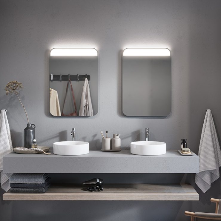 A mirror that provides very high resistance to edge and spot corrosion. In addition, it has been manufactured with respect for the planet and humans. Thanks to a state-of-the-art manufacturing process, it is free of lead and organic solvents, and its under-lighting eliminates the overexposure effect when LED strips are used.